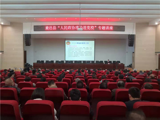 11月27日上午,河南省政協(xié)提案委員會辦公室主任劉俊江為鹿邑縣黨校2020年秋季科級干部意識形態(tài)工作專題研修班、青年干部培訓(xùn)班學(xué)員、縣政協(xié)常委、部分政協(xié)委員、政協(xié)機(jī)關(guān)干部共計(jì)360多人作了精彩生動的專題報(bào)告。