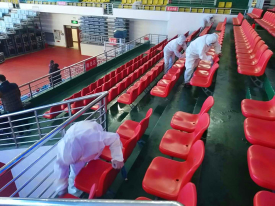 為確保疫情防控工作,保障第一屆周商大會順利進(jìn)行,11月26日至27日,30余名工作人員對市體育館內(nèi)外、周商產(chǎn)品展示展覽區(qū)進(jìn)行全面消毒殺菌,包括座椅,走廊,欄桿,門把手等,確保周商大會消殺工作不留死角?!?span style="font-size: 18px; text-align: justify; text-indent: 36px;">周口日報·周道客戶端見習(xí)記者 喬小納 攝