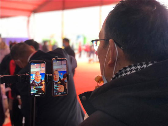 28日早上7時許,周口網(wǎng)紅俱樂部的網(wǎng)紅們和工作人員就開始為今天的直播做準備,早早把直播設備搬到現(xiàn)場,進行調(diào)試。10時左右,周商產(chǎn)品展示展覽活動現(xiàn)場人頭攢動,熱鬧非凡,來自周口本地的9位網(wǎng)紅們陸續(xù)架好手機直播設備,打開補光燈,開始直播?,F(xiàn)場的9位網(wǎng)紅各有特色,有打扮時髦的美女主播,有歌聲出眾的中年大叔,年齡最大的網(wǎng)紅是今年65歲的鹿邑大爺。網(wǎng)紅們一手拿著周口的蜂蜜、空心掛面、麻花、粉條、醬豆等土特產(chǎn),一邊對著手機屏幕里的粉絲熱情地展示和介紹起來,有的還直接進行現(xiàn)場吃播,不時與網(wǎng)友進行唱歌、聊天互動,吸引了不少行人前來觀看?!霸瓉碓诙兑羯峡催^網(wǎng)紅帶貨,但沒見過真人, 今天終于見到真實的網(wǎng)紅了!感覺很有意思!”前來觀展的市民劉女士說。