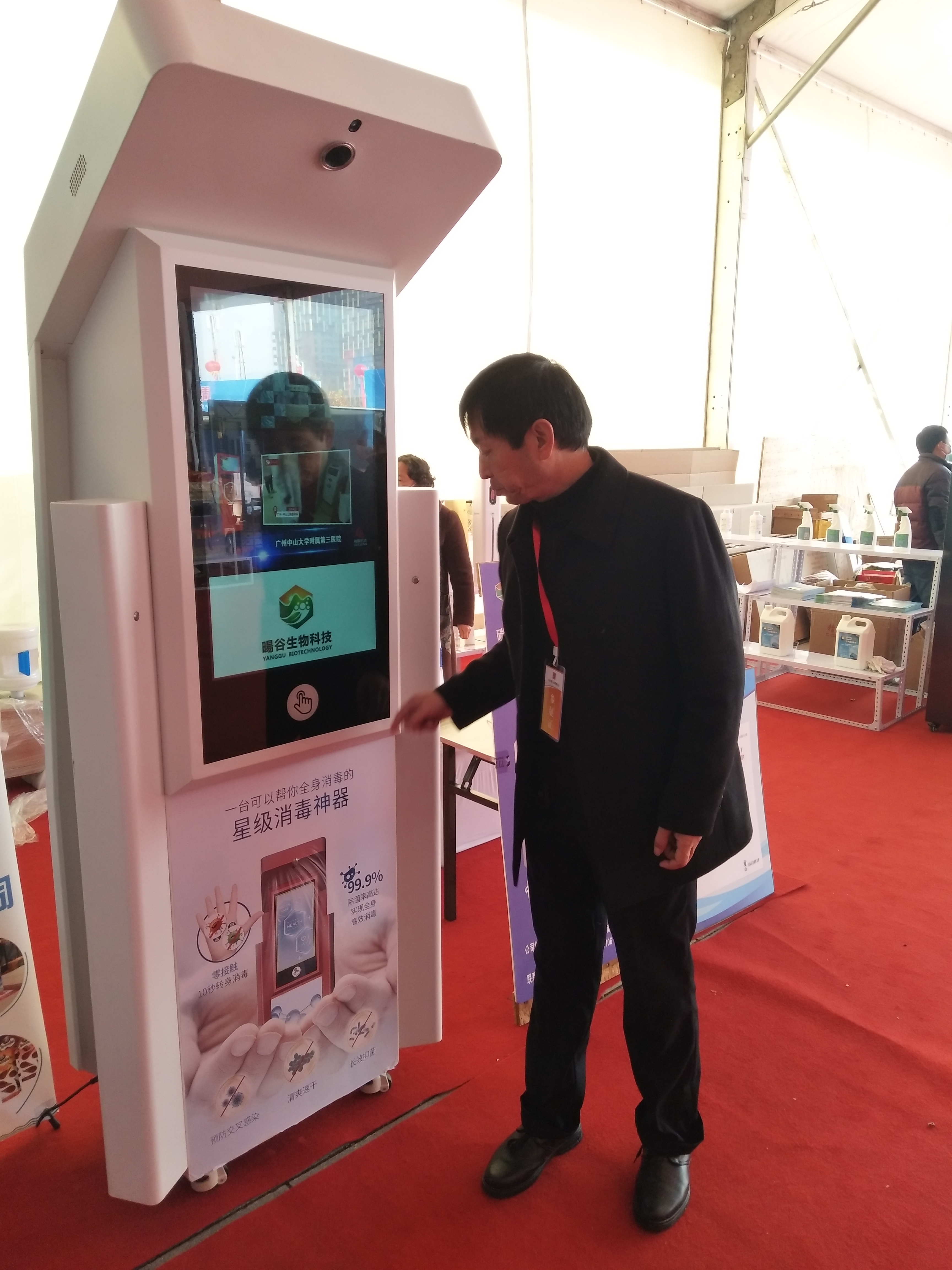 手掌往感控區(qū)上輕輕一罩,液晶屏四角就噴出霧化消毒液,大概持續(xù)10秒,足夠人轉(zhuǎn)一圈做周身消毒——在周商產(chǎn)品展示展覽大廳的西南角,北京陽谷生物科技有限公司市場部總監(jiān) 、項城人張清峰在介紹“人體感應(yīng)消毒機”,引得市民紛紛圍觀體驗。由于消毒液沒有異味,部分市民質(zhì)疑是清水,對此張清峰說:“我們用的是‘竹芳牌’碳酸型微酸性次氯酸消毒液,我們的消毒機主要是面向校園推廣的,給孩子用的東西除了要有效,還得保證安全溫和,碳酸型的消毒液就沒有這么大的刺激性。”據(jù)張清峰介紹,“人體感應(yīng)消毒機”是今年五月下旬生產(chǎn)的新品,目前處在推廣階段,“當?shù)弥芸谝k第一屆周商大會的消息,我第一時間想到要把消毒機展示給家鄉(xiāng)父老。我是個在北京打拼十多年的項城人,目前河南分公司由我負責(zé),項城市政府給了我很多支持?!?/p>
