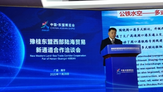 11月27日,第17屆中國——東盟博覽會在廣西南寧拉開帷幕,周口港區(qū)隨河南代表團(tuán)亮相盛會。在開幕式次日舉辦的豫桂東盟西部陸海貿(mào)易新通道合作洽談會上,周口港區(qū)黨委書記孫紅偉登臺演講,向國內(nèi)外參會嘉賓、客商推介周口中心港多式聯(lián)運便利條件以及港區(qū)招商引資優(yōu)厚政策,令與會人員眼前一亮。一家來自越南的進(jìn)出口貿(mào)易企業(yè),當(dāng)場與港區(qū)企業(yè)簽訂進(jìn)出口貿(mào)易長期合作協(xié)議。