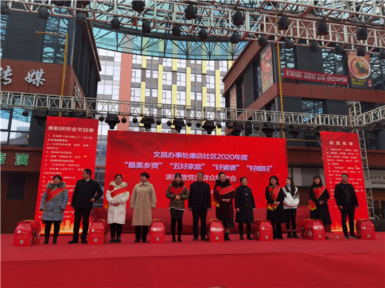 為大力弘揚(yáng)中華民族傳統(tǒng)美德,深入挖掘康店社區(qū)尊老敬孝、勤儉持家的先進(jìn)典型,積極引導(dǎo)廣大居民群眾移風(fēng)易俗、孝老愛(ài)親,促進(jìn)家庭和睦、社會(huì)和諧,11月27日,城鄉(xiāng)一體化示范區(qū)文昌辦事處康店社區(qū)舉行“最美鄉(xiāng)賢”“好婆婆”“好媳婦”“五好家庭”表彰大會(huì)暨文藝演出活動(dòng)。據(jù)悉,經(jīng)社區(qū)村民推薦,康店社區(qū)評(píng)選出的14位“最美鄉(xiāng)賢”、7戶“五好家庭”、5位“好婆婆”、7位“好媳婦”現(xiàn)場(chǎng)接收表彰。