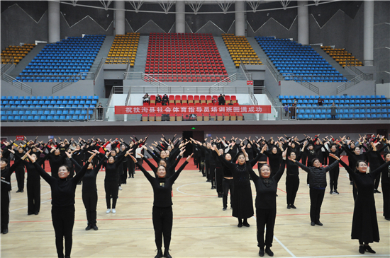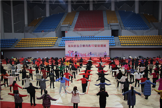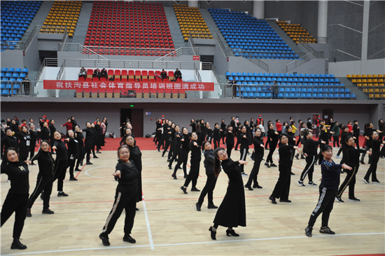 為進(jìn)一步傳播全民健身理念,推動(dòng)體育強(qiáng)縣、健康扶溝建設(shè),提高社會(huì)體育指導(dǎo)員健身指導(dǎo)服務(wù)水平,11月28日—29日,扶溝縣舉辦了2020年健身操舞項(xiàng)目社會(huì)體育指導(dǎo)員培訓(xùn)班。培訓(xùn)班由扶溝縣教育體育局主辦,扶溝縣體育中心承辦,共有來(lái)自全縣各鄉(xiāng)鎮(zhèn)(街道)的300余名學(xué)員參加培訓(xùn)。