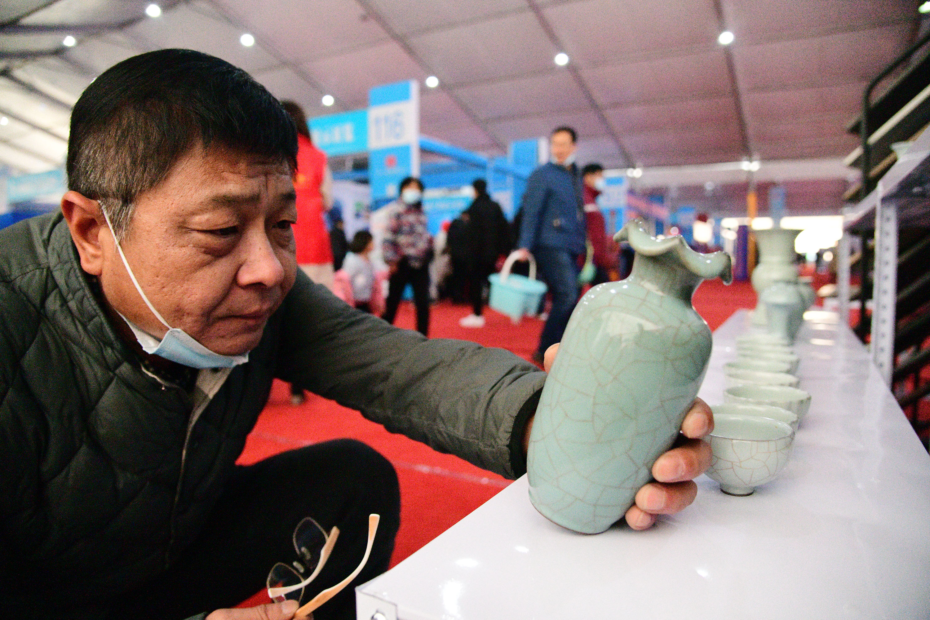 在展會(huì)上給顧客講述大宋官瓷品相的董俊,也是很厲害的周口企業(yè)家,能夠把開封老字號(hào)的官瓷,運(yùn)營得風(fēng)生水起,大宋官瓷瓷器和汴繡被譽(yù)為七朝古都象征性的物產(chǎn),還有大宋官茶,含有被譽(yù)為茶中黃金的“金花菌”,是“河南老字號(hào)”、“非物質(zhì)文化遺產(chǎn)”,也被選入“首屆開封禮物”。大宋官茶源于宋神宗(公元1068年),它今天的主人是淮陽區(qū)新站籍企業(yè)家牛華麗,這位淮陽籍漢子從小在開封長大,對(duì)大宋官茶獨(dú)有情種,現(xiàn)在是大宋官茶掌舵人,是大宋官茶非遺傳承人。而福興齋桶子雞老總馬勇是沈丘人,這是開封的名吃,去開封旅游,吃桶子雞和小籠包,成為游客必須品嘗的美味。馬勇參加周商大會(huì)帶回周口的桶子雞深受家鄉(xiāng)人的喜歡,一直熱賣。而“鞋品”鞋的老總侯建峰是鄲城人,他在廣州設(shè)有代加工廠,鞋子以河南為主要市場,在開封城由五個(gè)專賣店,同時(shí)也銷往全國。