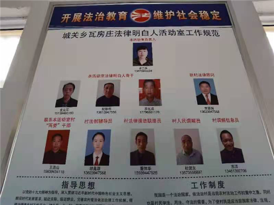 而這樣的法律明白人,瓦房莊行政村就有幾十人。專門為瓦房莊、杜莊、趙莊、董莊、蘇王堂5個自然村的村民服務(wù)!而在全縣,幾乎每村都有十數(shù)名不等!
