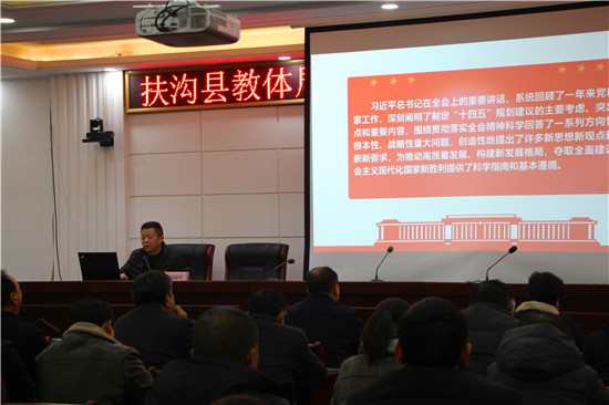 為深入學(xué)習(xí)貫徹黨的十九屆五中全會(huì)的精神實(shí)質(zhì)和豐富內(nèi)涵,推動(dòng)學(xué)習(xí)活動(dòng)深入扎實(shí)開展,12月8日,扶溝縣教體局舉行學(xué)習(xí)貫徹黨的十九屆五中全會(huì)精神縣委宣講團(tuán)報(bào)告會(huì)。教體局副局長(zhǎng)楊和平作為扶溝縣委宣講團(tuán)的成員之一,為教體局機(jī)關(guān)全體干部職工作了全會(huì)精神宣講。