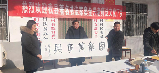 為弘揚(yáng)傳統(tǒng)文化,傳播正能量,助力農(nóng)村文化建設(shè),12月16日,沈丘縣自然資源局駐村工作隊(duì)邀請(qǐng)沈丘縣書法家竇全興老師到石槽集鄉(xiāng)于營(yíng)行政村開展送文化下鄉(xiāng)活動(dòng),為廣大群眾送去“文化大餐”。