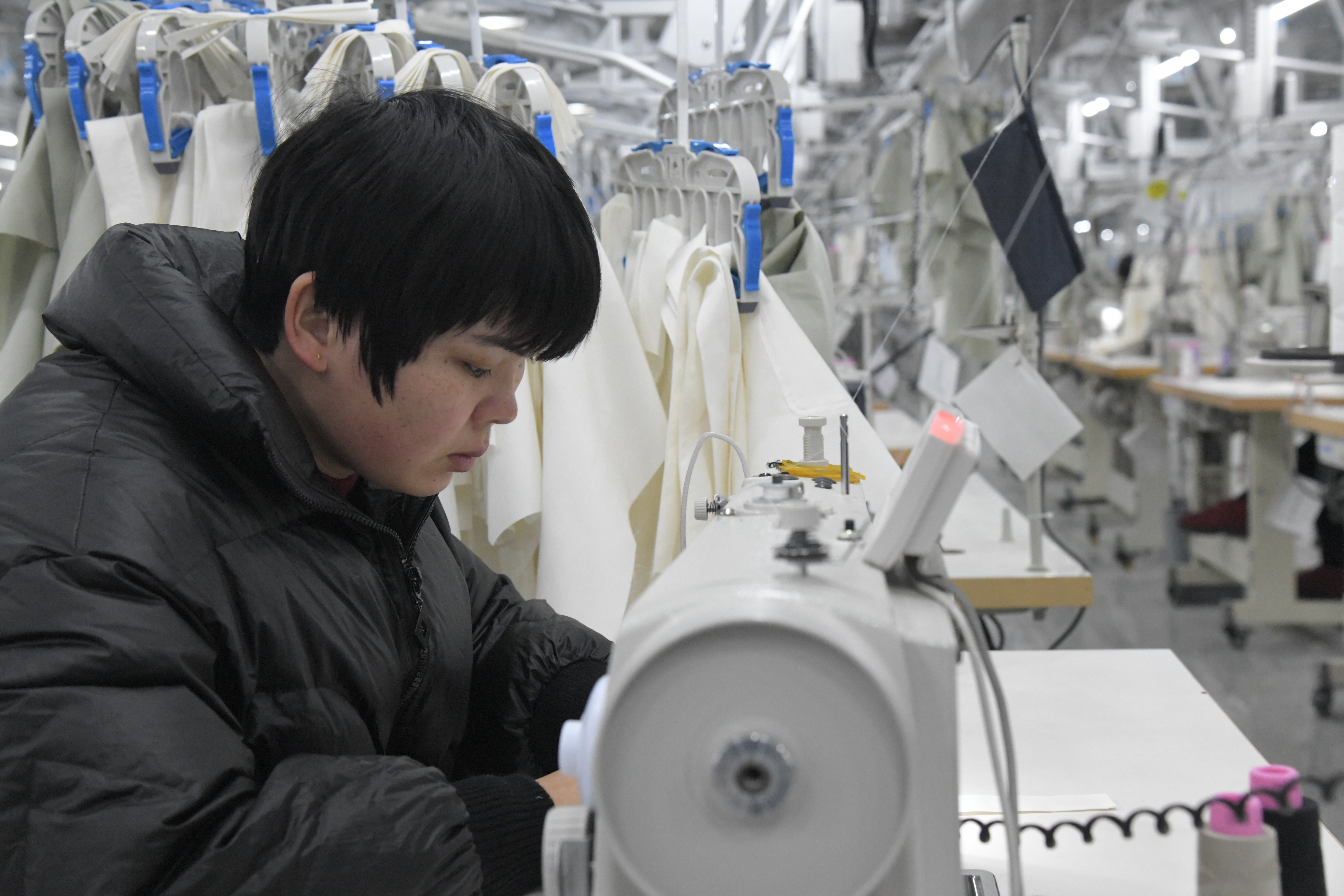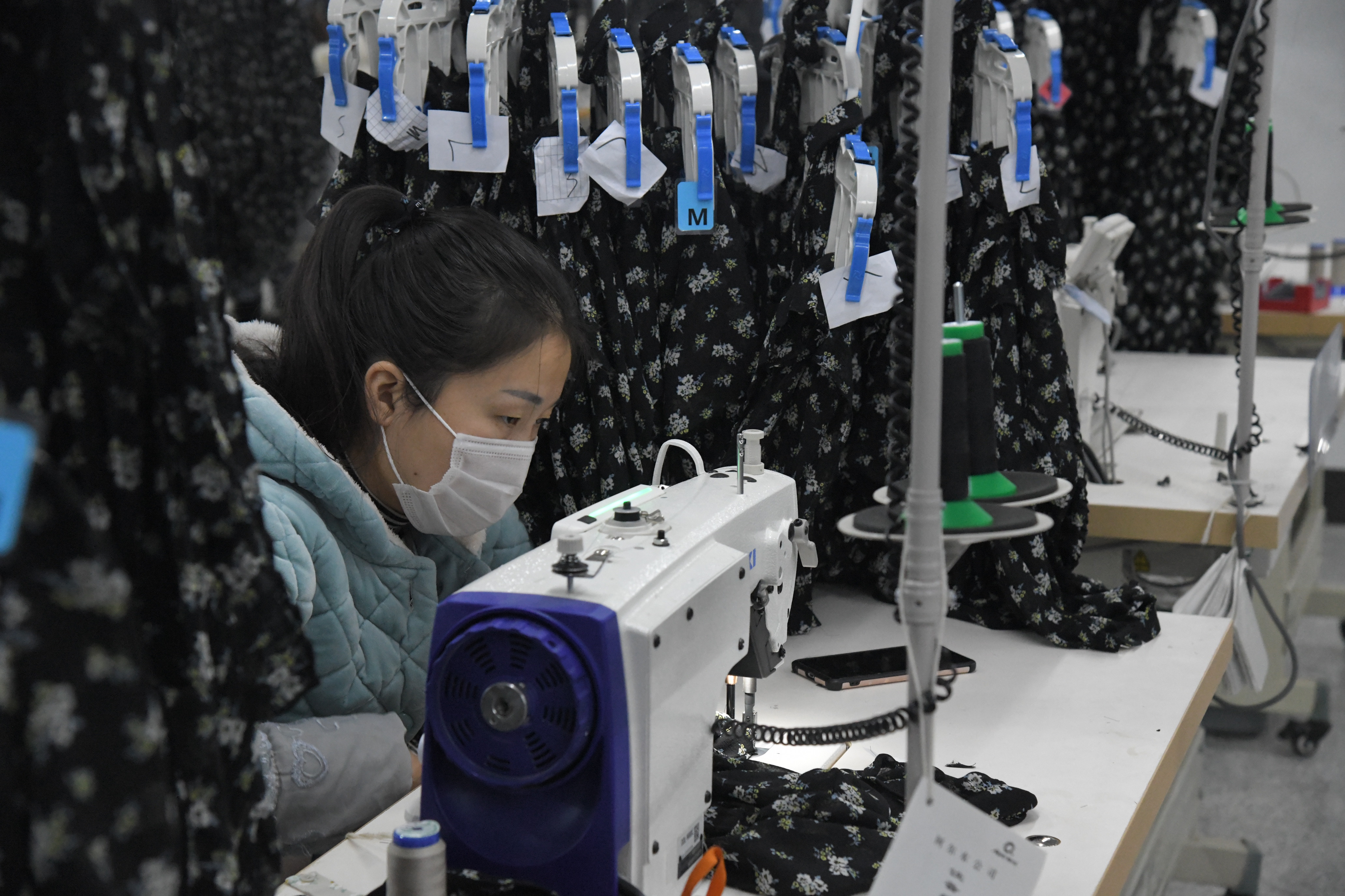 12月17日,在商水縣產(chǎn)業(yè)集聚區(qū)雅戈?duì)柺⑻┘徔椆I(yè)園一現(xiàn)代化車間內(nèi),紡織女工正在制作外貿(mào)訂單服裝。雅戈?duì)柺⑻┘徔椆I(yè)園是周口市重點(diǎn)招商引資企業(yè),總投資48億元,占地2000畝,是集棉紡、面料、印染、成衣、進(jìn)出口貿(mào)易、跨國經(jīng)營(yíng)于一體的大型綜合生產(chǎn)基地,長(zhǎng)期代加工雅戈?duì)?、PVH等國際品牌。該項(xiàng)目一期已經(jīng)投產(chǎn),全部建成后將填補(bǔ)我市紡織服裝行業(yè)缺少高端品牌的空白,促進(jìn)我市輕紡工業(yè)的發(fā)展。