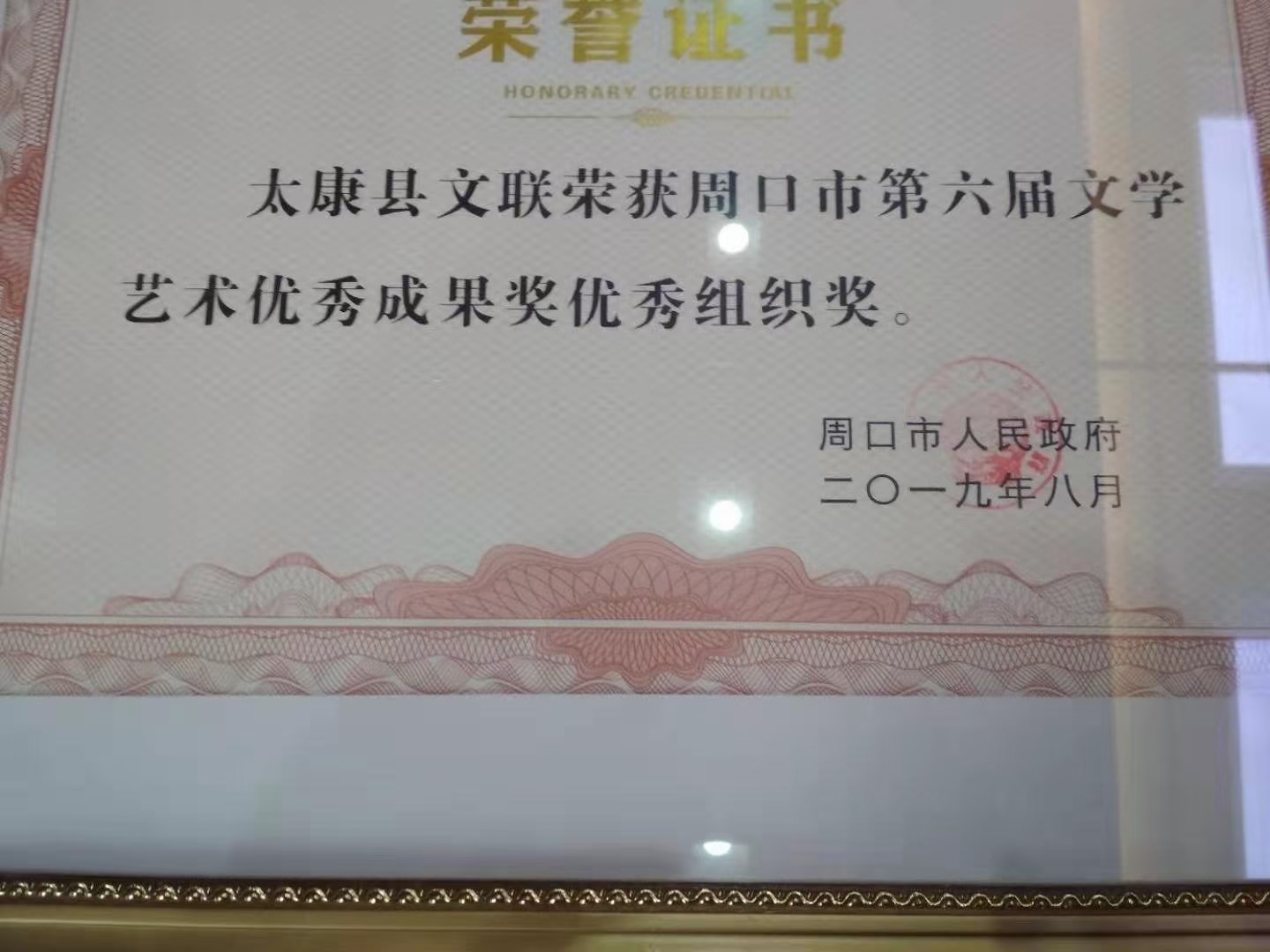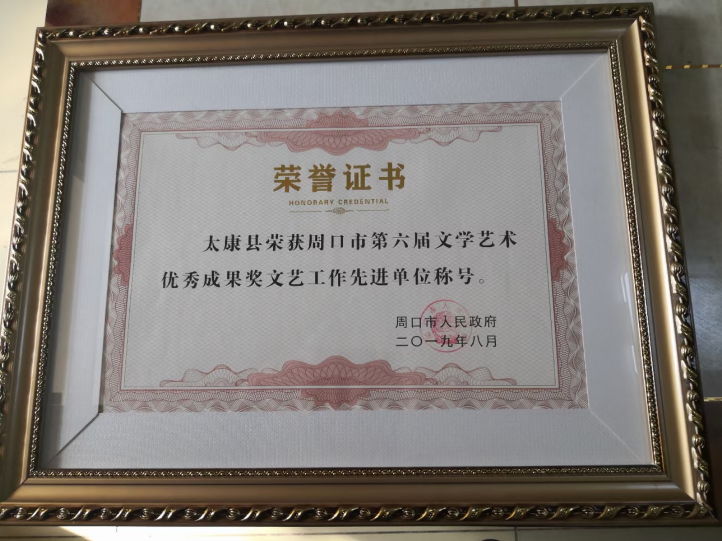周口市第六屆文學(xué)藝術(shù)優(yōu)秀成果獎(jiǎng)表彰大會(huì)日前隆重召開,太康縣文聯(lián)被市政府授予“文藝工作先進(jìn)單位”和“文學(xué)藝術(shù)成果獎(jiǎng)優(yōu)秀組織獎(jiǎng)”。縣文聯(lián)主席安義斌在大會(huì)上作了典型發(fā)言。太康縣書法家劉文勇、許春梅,畫家張本靜、張?jiān)伱?、施建?guó)、李俊柯、姚海歌,作家李新峰,表演藝術(shù)家張?zhí)煊?、王在理?0位藝術(shù)家也一同受到表彰。