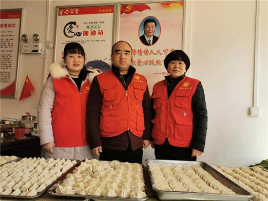 和面、拌餡、搟皮兒……第九黨支部黨員和其他志愿者一起勞作,近30盤水餃不到一天的功夫包好、速凍......待冬至當(dāng)天在愛心粥屋就餐的環(huán)衛(wèi)工人都能吃上熱騰騰的水餃。