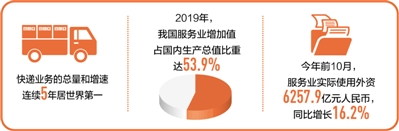 快遞業(yè)務(wù)的總量和增速連續(xù)5年居世界第一,電子商務(wù)和移動(dòng)支付交易額居世界第一……“十三五”以來,我國(guó)服務(wù)業(yè)規(guī)模日益壯大,質(zhì)量效益大幅提升,新業(yè)態(tài)新模式快速涌現(xiàn)。