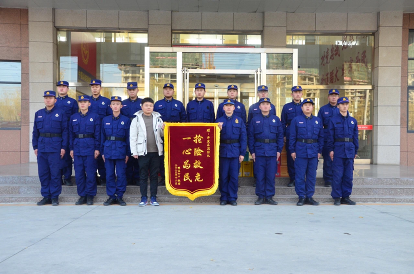 12月15日,一名小伙將一面錦旗送到開發(fā)區(qū)消防救援大隊(duì)隊(duì)員手中,以此表達(dá)深深的謝意。
