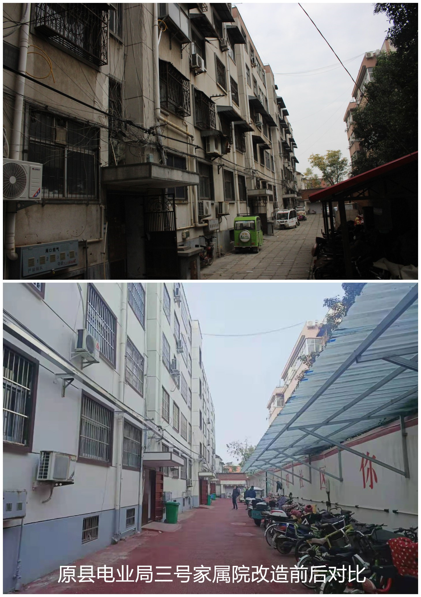 12月22日,陽光明媚,記者一行走進(jìn)位于西華縣箕城路上的供電公司(原電業(yè)局)三號(hào)家屬院,只見一棟五層高的家屬樓墻壁被粉刷一新,家家戶戶新裝的不銹鋼防盜窗結(jié)實(shí)穩(wěn)固,院里新鋪設(shè)的紅色透水混泥土地面平整干凈,配有充電插座的電動(dòng)車雨棚方便實(shí)用,充滿新意的“文化墻”耀眼醒目……