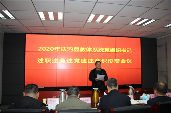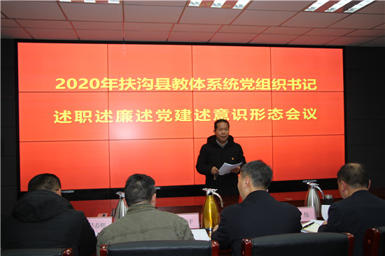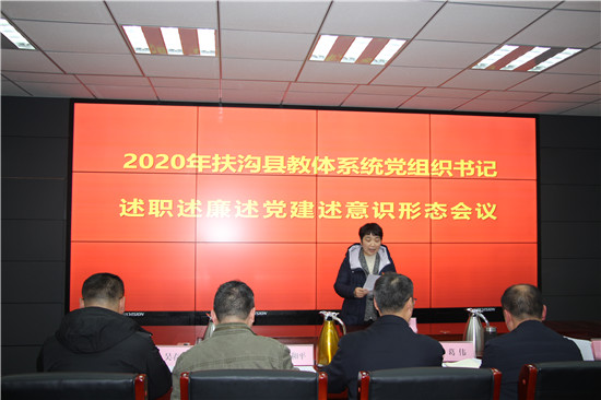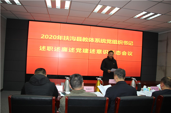 12月24日,扶溝縣教體局召開2020年度教體系統(tǒng)黨組織書記述職述廉述黨建述意識(shí)形態(tài)會(huì)議??h委宣傳部副部長(zhǎng)顏俊超,縣直工委書記于紅琴,縣紀(jì)委監(jiān)委派駐第六紀(jì)檢監(jiān)察組副組長(zhǎng)張春艷到會(huì)指導(dǎo),縣教體局黨組成員、各股室負(fù)責(zé)人參加會(huì)議。