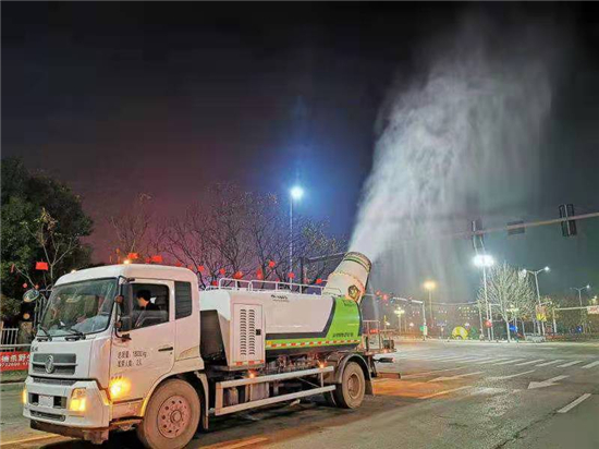 一點一滴顯擔當。為強化疫情防控,太康縣城市管理局每日對城區(qū)內垃圾中轉站消毒,用灑水車、掃地車對城區(qū)內37條主次干道開展反復灑水、沖洗、濕掃作業(yè)。霧炮車加裝1:200稀釋84消毒液,每天對城區(qū)內37條主次干道、公園、廣場等公共區(qū)域開展循環(huán)噴灑,無死角、無盲區(qū)“全城消殺”,全力護航市民健康。