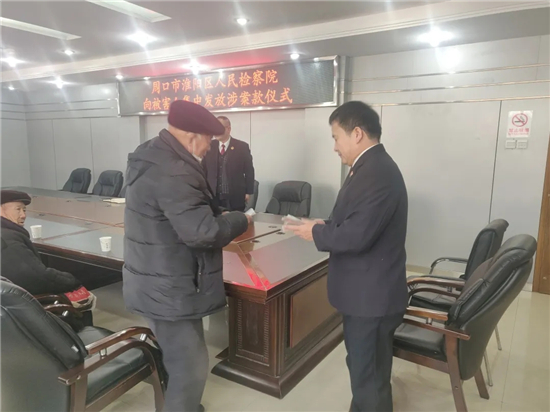 近日,淮陽區(qū)人民檢察院舉行向被害人集中發(fā)放涉案款儀式,將近期辦理的一起盜竊案中追回的11720元退賠款一一發(fā)還給5名被害人。
