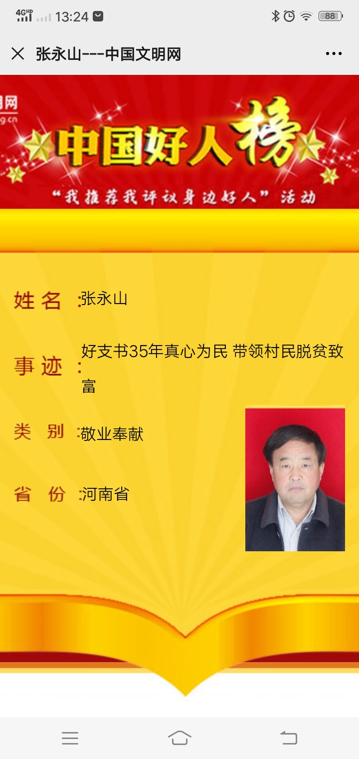 太康縣楊廟鄉(xiāng)祁樓行政村村民張永山被選舉為太康縣祁樓行政村支部書記,他在這個(gè)位置上干了35年。幾十年來(lái),他鞠躬盡瘁為村民謀實(shí)惠辦實(shí)事,把自己的青春熱血都獻(xiàn)給了農(nóng)村這片熱土。12月29日,記者從太康縣文明辦獲悉:張永山榮登“敬業(yè)奉獻(xiàn)”類“中國(guó)好人榜”。