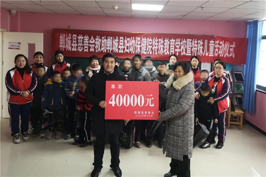 12月29日,鄲城縣慈善會(huì)會(huì)長趙愛梅、常務(wù)副會(huì)長趙如軒、副會(huì)長朱山峰、秘書長代文一行4人,到鄲城縣婦幼保健院特殊教育學(xué)校對(duì)特殊兒童進(jìn)行慈善捐助。