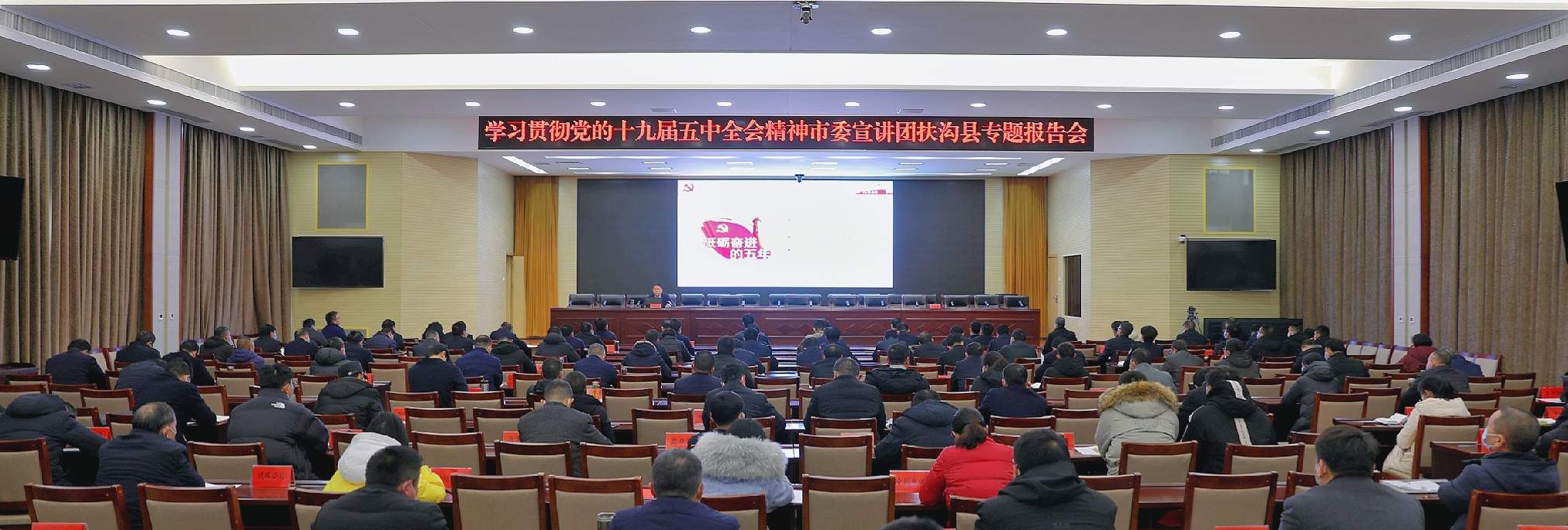 12月29日下午,學習貫徹黨的十九屆五中全會精神市委宣講團扶溝縣專題報告會在扶溝縣委第一會議室舉行。市委宣講團成員,市商務(wù)局黨組書記、局長劉宏偉作專題宣講報告??h委書記張穎波主持報告會。