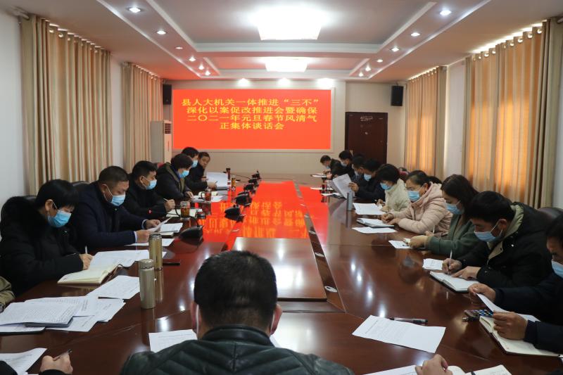 12月30日,西華縣人大常委會(huì)機(jī)關(guān)召開全體人員會(huì)議,安排部署機(jī)關(guān)一體推進(jìn)“三不”深化以案促改工作,進(jìn)行節(jié)前廉政集體談話。縣人大常委會(huì)主任周曉燕,副主任趙曉春、王心坎、龐有敬出席會(huì)議。