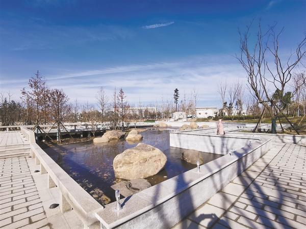 2020年12月31日,中心城區(qū)水系綜合治理書香文苑園區(qū)完工,向市民開放。書香文苑園區(qū)位于文昌大道與政通路交叉口西南角,是洼沖溝水系治理的一部分。園區(qū)內突出周口毛筆之鄉(xiāng)文化元素、建設生態(tài)綠色林帶、布置觀景濱水平臺等內容,建有兩處廣場、景觀旱噴、濱水平臺、文化地雕等設施,為市民增加一處活動休閑的地方。記者 孫安平 攝