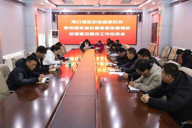 會議的主要任務(wù)是深入貫徹中央、省、市紀檢監(jiān)察工作要求,結(jié)合港區(qū)實際,認真整改省紀委監(jiān)委監(jiān)督調(diào)研反饋意見中存在的問題,舉一反三,深刻排查,全面整改,確保整改工作落實、落地、落細。會議宣讀了市紀委《關(guān)于統(tǒng)籌做好省紀委監(jiān)委監(jiān)督調(diào)研反饋意見整改落實工作的通知》和周口港區(qū)紀委監(jiān)委《關(guān)于成立省紀委監(jiān)委監(jiān)督調(diào)研反饋意見整改工作領(lǐng)導(dǎo)小組的通知》。