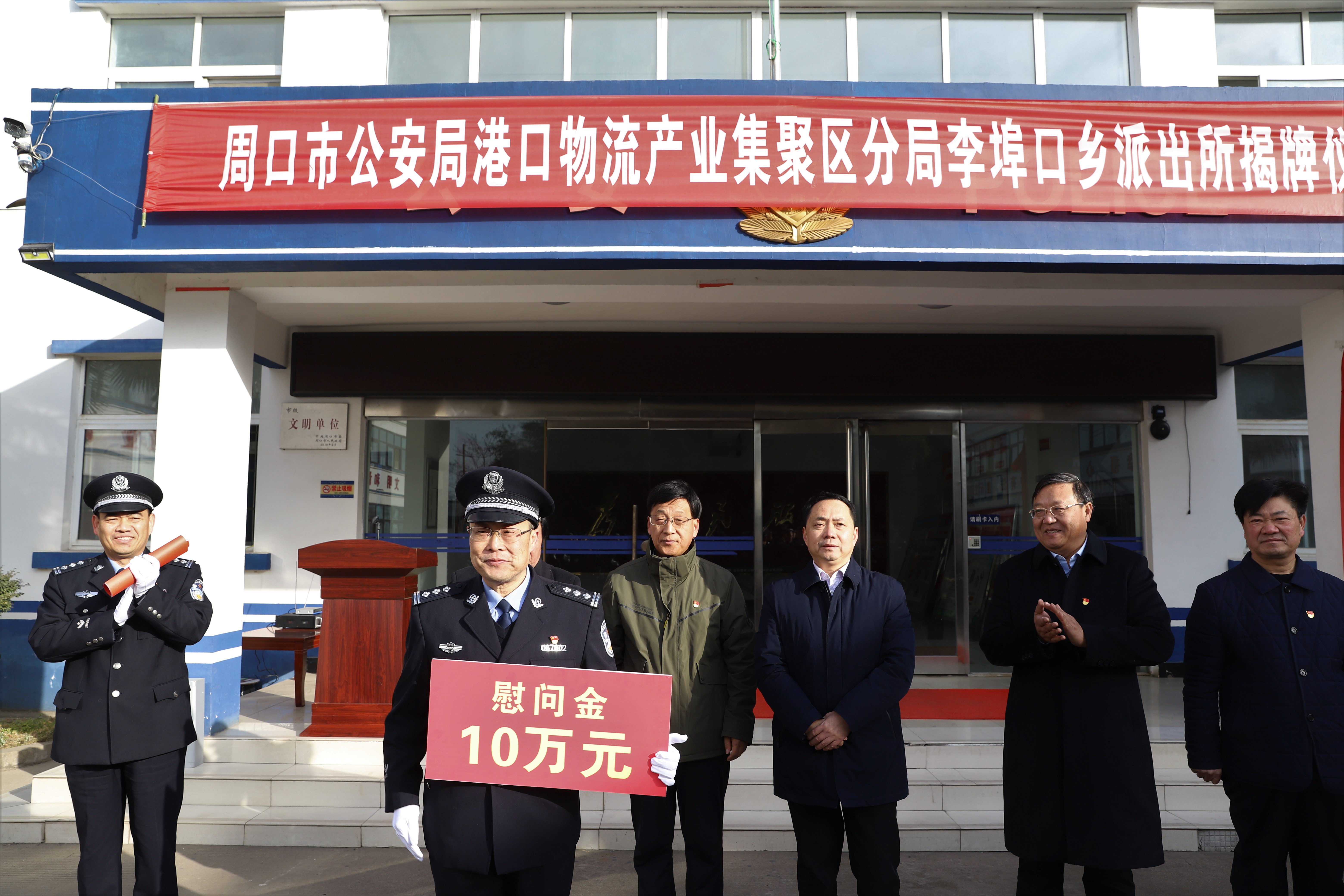 隨后,程若光、康群泉一同為周口港區(qū)李埠口鄉(xiāng)派出所揭牌。②9
