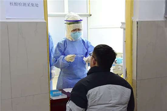 與此同時(shí),院應(yīng)急辦接到指令后,組織人員沿途疏散就診人群。發(fā)熱門(mén)診護(hù)士按醫(yī)生開(kāi)具的檢查申請(qǐng)單,引導(dǎo)患者和家屬做過(guò)核酸標(biāo)本咽拭子采集、全身消毒后,將家屬引導(dǎo)至留觀室等待檢驗(yàn)結(jié)果,告誡其結(jié)果正常后方可離開(kāi)醫(yī)院回家自我隔離14天以上。