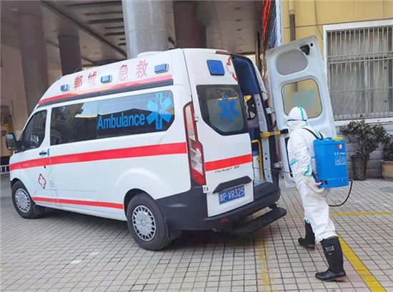 發(fā)熱患者經(jīng)過(guò)之處,醫(yī)院專職消毒人員和各科室工作人員立即對(duì)沿途道路、儀器進(jìn)行全方位多角度消毒滅殺。
