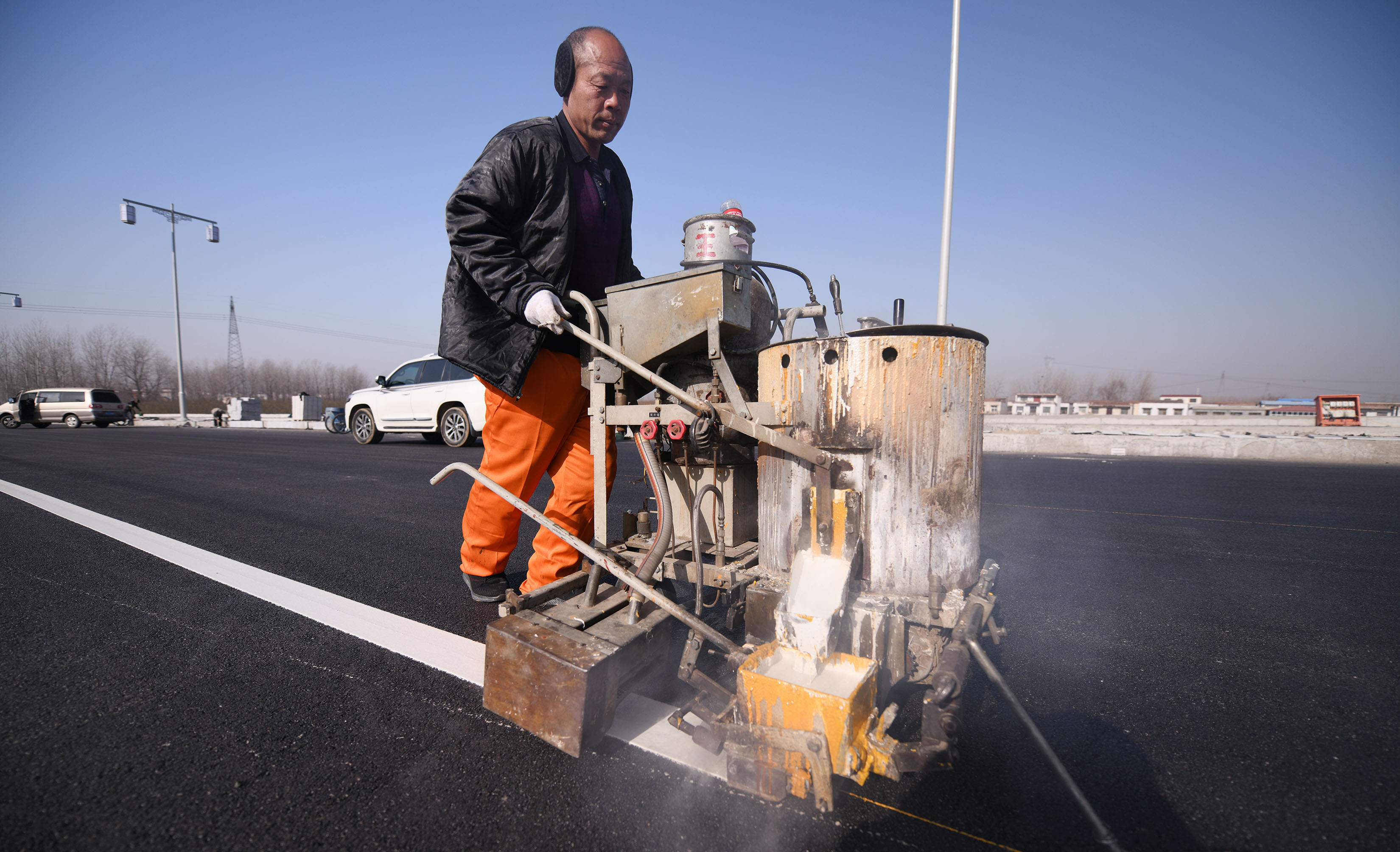 主道正在畫行車線