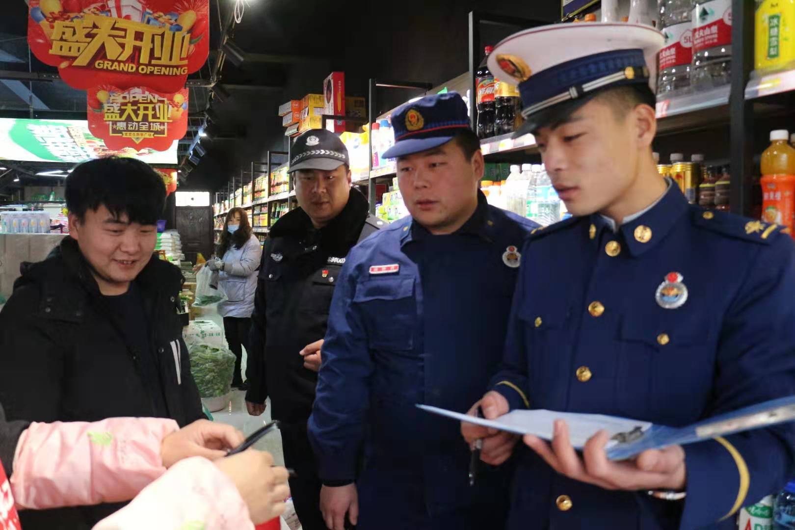 連日來,為加強冬季防火安全,做到防火患于未“燃”,扶溝縣組織應(yīng)急辦、微型消防站和派出所等部門執(zhí)法人員,對轄區(qū)的商場、賓館、飯店等人員密集場所的消防安全進行檢查,全力筑牢冬季消防安全“防火墻”。 圖為1月15日,扶溝縣崔橋鎮(zhèn)執(zhí)法人員在一商場進行消防安全檢查。
