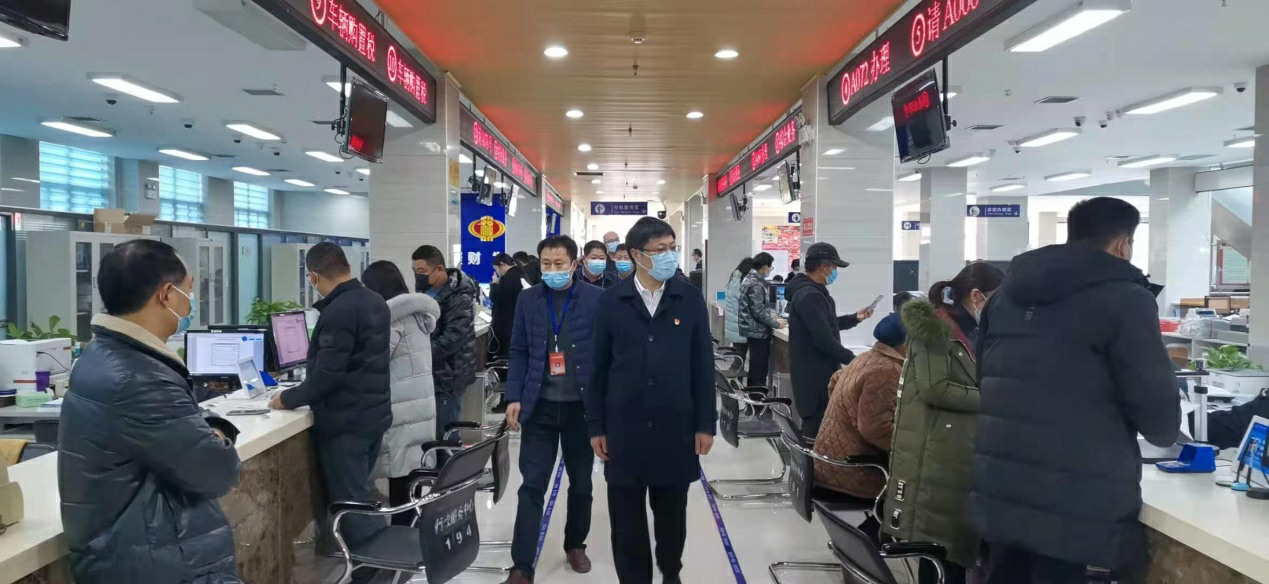 1月18日,扶溝縣副縣長(zhǎng)史凱歌、政協(xié)副主席郝寶杰到該縣政務(wù)服務(wù)大廳實(shí)地檢查疫情防控措施落實(shí)情況,就各項(xiàng)防控工作落實(shí)情況進(jìn)行再檢查、再細(xì)化、再落實(shí)。