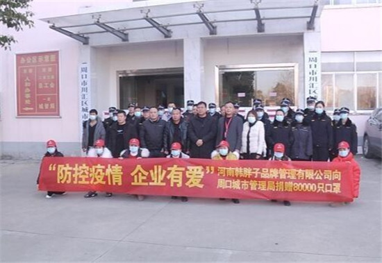 參加慰問(wèn)的河南韓胖子品牌管理有限公司經(jīng)理秦林說(shuō),城管隊(duì)員每天堅(jiān)持在抗疫第一線,是城市的美容師。我們這次向城管局捐獻(xiàn)口罩,貢獻(xiàn)自己的一份愛(ài)心,也為城市建設(shè)增加一份力量。