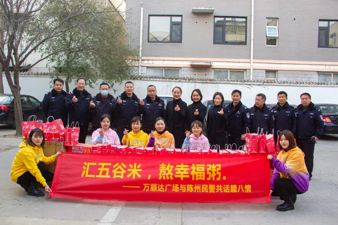 站好城市第一班崗的還有公安民警,為了城市的平安,公安民警常常值守夜班。萬順達廣場當天為周口市公安局川匯分局陳州派出所的民警們送上了臘八祝福,提醒他們在守護市民平安的同時,也別忘了關心自己。