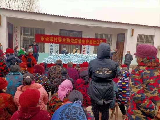 據(jù)了解,東老家行政村在外務(wù)工人員較多,在家留守的老人特別是貧困家庭的老人大多沒有準(zhǔn)備口罩。村黨支部書記劉杰了解到這一情況后,結(jié)合春節(jié)臨近,外出務(wù)工返鄉(xiāng)人員逐漸增加的現(xiàn)狀,決定購買2萬只口罩,免費(fèi)向本村六十歲以上老人、貧困戶家庭人員、村小學(xué)師生每人發(fā)放50只,確保他們的個(gè)人疫情防控所需。