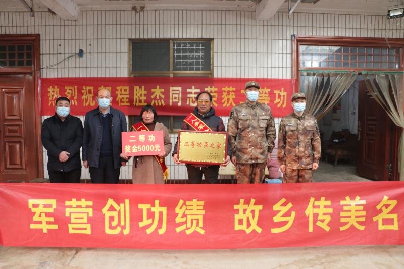 1月21日下午,太康縣高賢鄉(xiāng)保渡村現(xiàn)役軍人程勝杰家門前鑼鼓喧天,喜氣洋洋,熱鬧非凡。太康縣委常委、縣人武部部長于永前,政委郭立君,縣退役軍人事務局局長潘布道,高賢鄉(xiāng)黨委書記鄭宏等相關領導一行,為榮立二等功的程勝杰家屬送來了立功喜報、“二等功臣之家”牌匾及5000元慰問金。