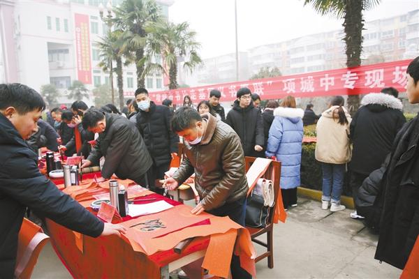 1月23日上午,項城市中等專業(yè)學(xué)校、市書法家協(xié)會聯(lián)合開展了“我們的節(jié)日——義寫春聯(lián)進(jìn)校園”活動,黃樹民等6位書法家受邀來校為廣大師生義務(wù)書寫春聯(lián)。師生代表紛紛請名家為自己寫春聯(lián),整個活動洋溢著歡樂祥和的氣氛。“我們的節(jié)日——義寫春聯(lián)進(jìn)校園”活動不僅繼承和發(fā)揚(yáng)了中華優(yōu)秀傳統(tǒng)文化,而且豐富了在校師生的精神文化生活,助力了書香校園建設(shè),堅定了師生的文化自信。 李立云 郭新明 攝