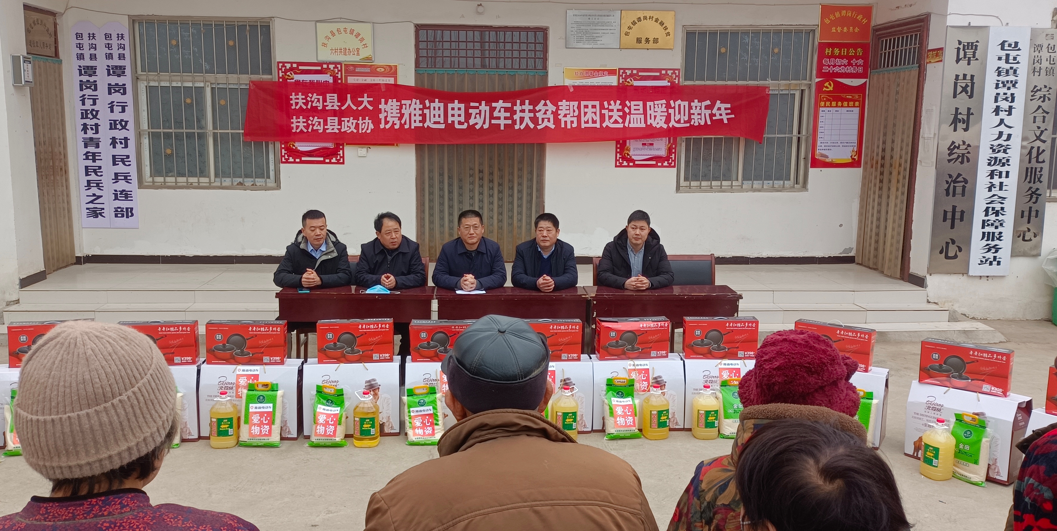 1月25日下午,扶溝縣人大、縣政協(xié)聯(lián)合雅迪電動(dòng)車扶溝專賣店到包屯鎮(zhèn)譚崗行政村舉行愛心扶貧捐贈(zèng)活動(dòng)??h人大黨組成員王世學(xué),縣政協(xié)副主席郝寶杰出席捐贈(zèng)活動(dòng)。