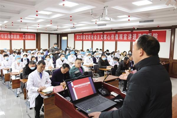 本報訊( 記者 侯國防 通訊員 艾義麟 文/圖)為學(xué)習(xí)貫徹黨的十九屆五中全會精神,近日,周口港區(qū)醫(yī)院(周口燒傷醫(yī)院)邀請市委黨校老師以“以黨建引領(lǐng)醫(yī)院高質(zhì)量發(fā)展”為主題,開展黨的十九屆五中全會精神宣講活動(如圖)。周口港區(qū)醫(yī)院董事長孫繼祥、院長賀志勇、副董事長張巋、黨支部書記兼行政副院長苑慧毓、副院長王瑞海、業(yè)務(wù)副院長高山、監(jiān)事會主席譚玉峰等院領(lǐng)導(dǎo)班子成員及醫(yī)院全體干部職工參加活動。