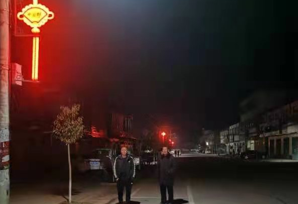 胡志峰是個(gè)講誠(chéng)信、重信用的人,說(shuō)到做到,迅速展開(kāi)工作。在他的帶領(lǐng)下,全體班子成員齊心協(xié)力,分工合作,有的聯(lián)系路燈廠家,催促發(fā)貨;有的聯(lián)系電力部門,請(qǐng)求委派電力工作人員協(xié)助;有的扶梯子、送工具,搞好后勤服務(wù)。短短幾天時(shí)間,55盞路燈,全部安裝完畢。