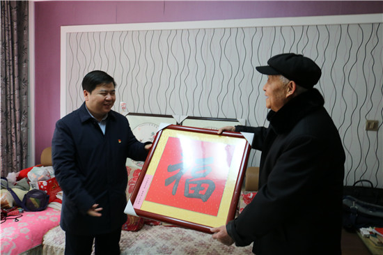 在新春佳節(jié)來臨之際,1月28日上午,帶著對離退休老干部的濃濃祝福和深深關(guān)懷,鹿邑縣委書記、縣長李剛,縣委常委、縣委辦公室主任侯自峰,副縣長翟杰,先后到劉景榮、梁永釗、陳萬敏、丁欽印、楊德平等退休老干部家中看望慰問,為他們送去新春的祝福和問候。