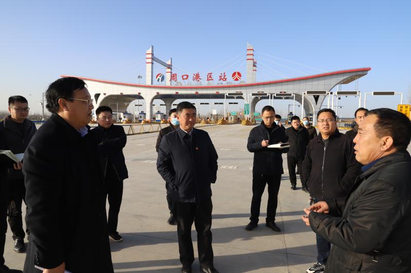 大廣高速港區(qū)互通立交項(xiàng)目距中心港碼頭約為1.2公里,目前已經(jīng)達(dá)到通車條件,通車后通過疏港道路實(shí)現(xiàn)碼頭與高速無縫對(duì)接。在該項(xiàng)目收費(fèi)站,孫鵬詳細(xì)詢問項(xiàng)目負(fù)責(zé)人通車前需要做的工作,他指出,高速公路是多式聯(lián)運(yùn)的重要組成部分,要抓緊時(shí)間解決目前存在問題,推進(jìn)大廣高速港區(qū)互通立交項(xiàng)目早日通車。