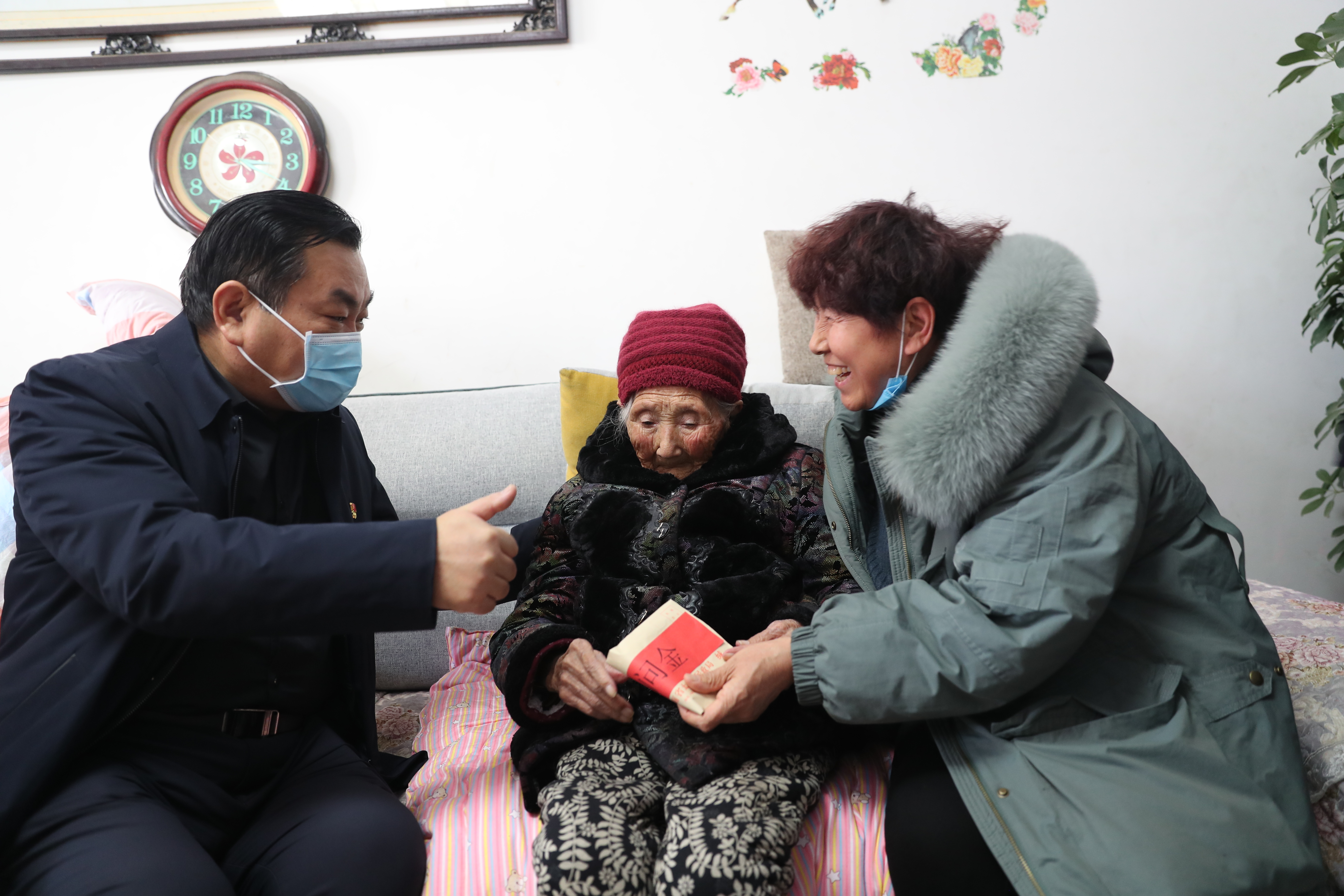 太康縣城關(guān)鎮(zhèn)白莊社區(qū)呂耀真老人,今年已經(jīng)104歲高齡,精神尚好。王國(guó)璽走進(jìn)呂耀真老人的家中,親切拉住老人的手,詢問她的生活、身體情況,反復(fù)叮囑老人的家人要照顧好老人的生活。王國(guó)璽指出,尊老、敬老、愛老、孝老是中華民族的傳統(tǒng)美德。要進(jìn)一步弘揚(yáng)尊老愛老敬老的良好風(fēng)尚,切實(shí)營(yíng)造全社會(huì)尊敬老人、愛護(hù)老人、關(guān)心老人的良好氛圍,讓老人們更好地感受到社會(huì)的溫暖。