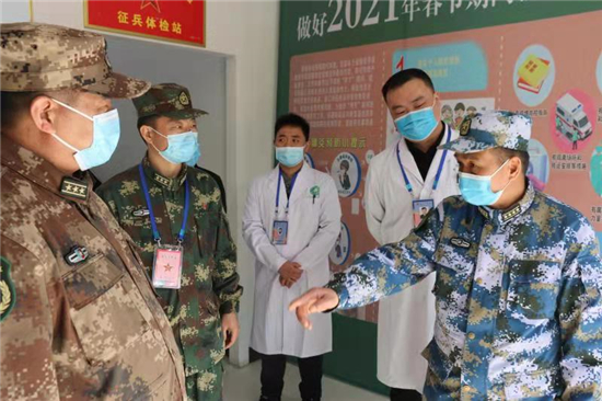 湯維政走進內科、外科、五官科、心電圖、心理測試等檢查科室,實地查看體檢站基礎設施、體檢流程、人員配備、疫情防控、后勤保障等情況。他看到體檢場所按照流程合理、尊重隱私、閉環(huán)管理的要求,結合疫情防控的需求優(yōu)化診室設置,醫(yī)務人員嚴格把控體檢項目的各個關口,給予了肯定和贊揚。湯維政與現(xiàn)場候檢的應征青年親切交談,了解他們的年齡、學歷、家庭等情況,對適齡青年、大學畢業(yè)生踴躍參軍、報效祖國的行為表示贊賞,勉勵他們積極接受祖國挑選,投身軍營建功立業(yè)。
