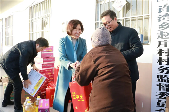 當日下午,一輛滿載慰問品的貨車緩緩駛入趙莊行政村村室內(nèi),車上是王淑華和東新區(qū)人民醫(yī)院的志愿者們?yōu)橼w莊行政村困難群眾準備的年貨?;顒蝇F(xiàn)場,王淑華親切地與趙莊行政村困難群眾拉家常,小院內(nèi)充滿了歡聲笑語。