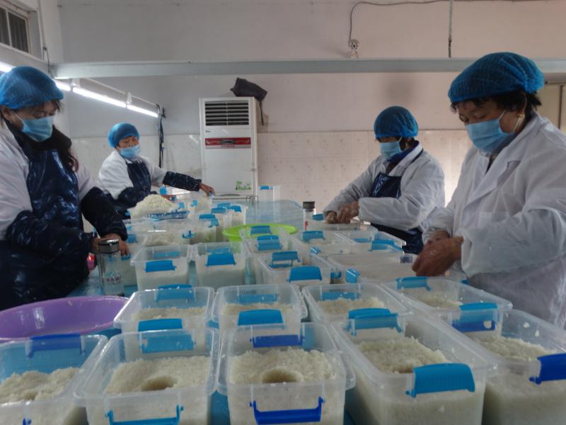“來這里務(wù)工的‘鐵桿工人’,大多都是村上的留守婦女。務(wù)工就業(yè)形式很靈活,不誤農(nóng)活,也不影響接送孩子上學(xué),平時有空就來,工資計時或者計件,車間里還安排有4名新脫貧的‘光榮戶’就業(yè)?!蓖趿魪S告訴記者,時至春節(jié),市場需求量很大,有時一天能加工糯米2000公斤左右,工人月均工資都在2000元以上。