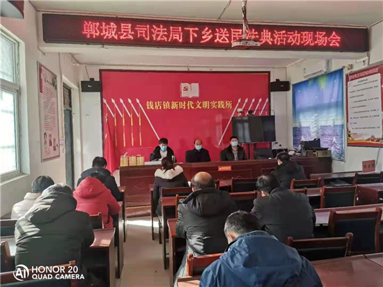 1月31日,鄲城縣司法局局黨組書記、局長張?zhí)焐?,副局長雷中鋒帶領工作人員深入到農村、社區(qū)、機關、校園、企業(yè)開展《民法典》宣傳活動。