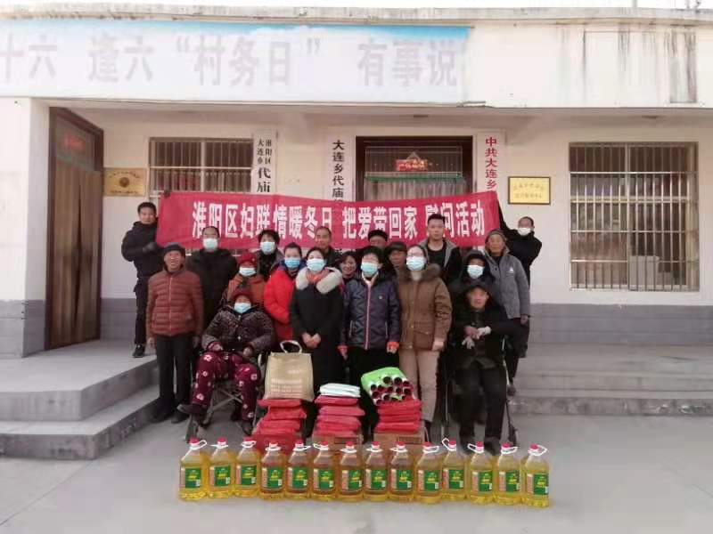 為把省、市婦聯(lián)“關(guān)于做好2021年春節(jié)慰問困難婦女兒童和家庭關(guān)愛幫扶工作的通知”精神落到實(shí)處,2月2日,淮陽區(qū)婦聯(lián)帶著威士德教育、市級巧媳婦就業(yè)創(chuàng)業(yè)示范基地霖海服飾有限公司捐贈的愛心物資,先后深入到大連鄉(xiāng)代廟行政村、產(chǎn)業(yè)集聚區(qū)棠棣行政村開展“情暖冬日 把愛帶回家”走訪慰問活動(dòng),為14戶貧困婦女、留守兒童、困難黨員等家庭送去米、面、口罩、春聯(lián)等生活用品,并向他們送上新年的問候和祝福。