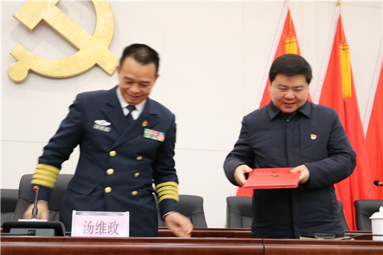 2月3日,鹿邑縣召開人武部黨委第一書記任職宣布大會。周口軍分區(qū)司令員湯維政出席并為李剛同志頒發(fā)任命書:縣委書記、縣長李剛?cè)温挂乜h人武部黨委第一書記。周口市委組織部部務(wù)委員王軍、周口軍分區(qū)政治工作處副團(tuán)職干事孫波、縣人武部政委李峰、人武部部長范亞光出席會議。