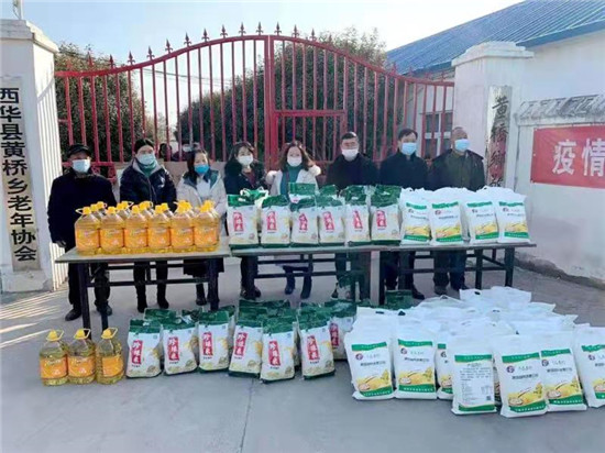 當(dāng)日,西華縣電商產(chǎn)業(yè)園黨支部黨員、西華縣騰翔中藥材有限公司負(fù)責(zé)人孫向坤,帶領(lǐng)公司員工為黃橋鄉(xiāng)養(yǎng)老院和艾崗鄉(xiāng)養(yǎng)老院送去米、面、油等慰問(wèn)品,祝愿敬老院的老人們身體健康、萬(wàn)事如意。